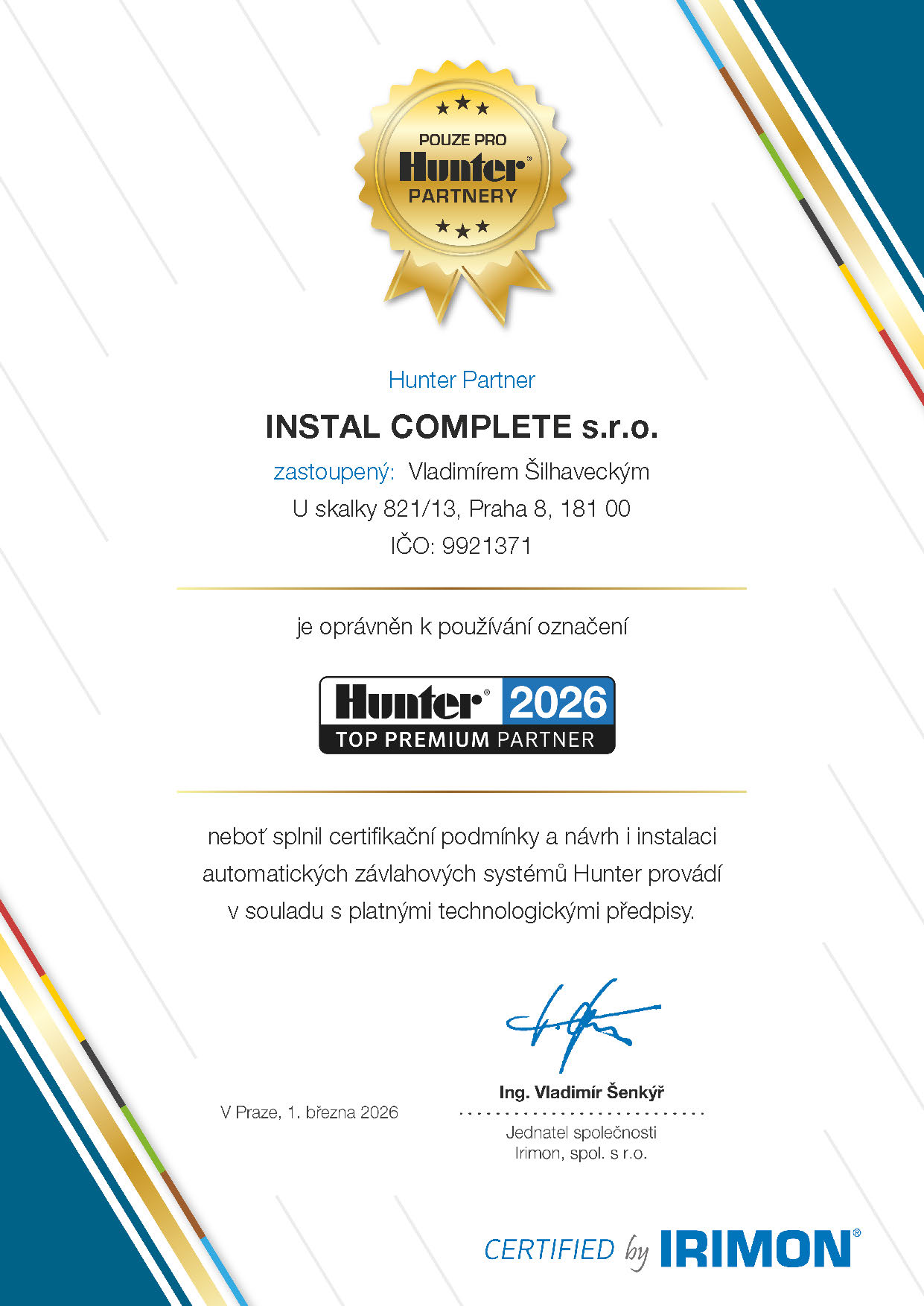 Instalujeme od A do Z profesionální automatické zavlažovací systémy značky HUNTER, které jsou špičkou na světovém trhu. A to včetně servisu a celoroční údržby.